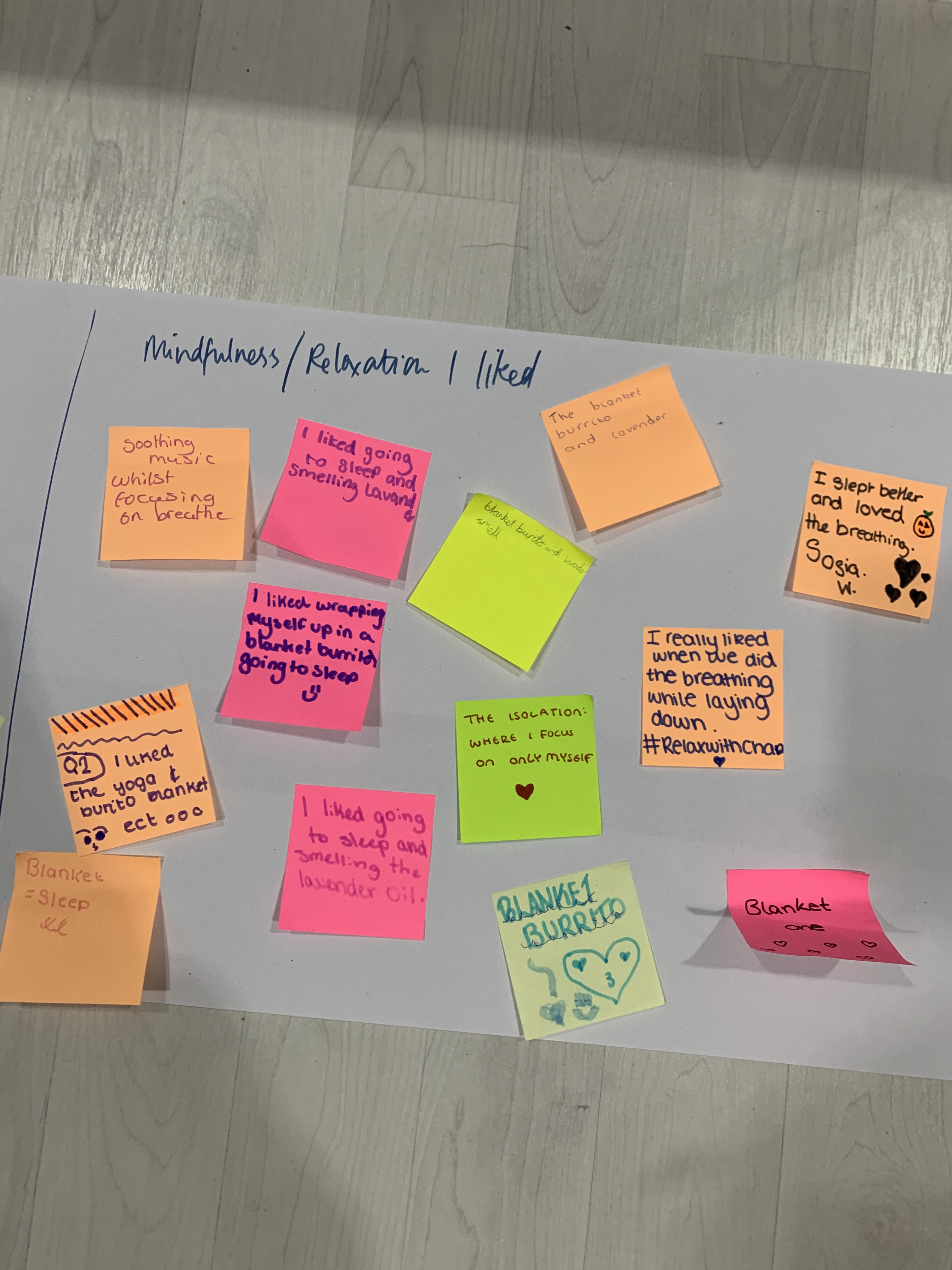 - Test bedding mindfulness, relaxation and meditation ideas within my youth groups and evaluating with them how it made them feel.